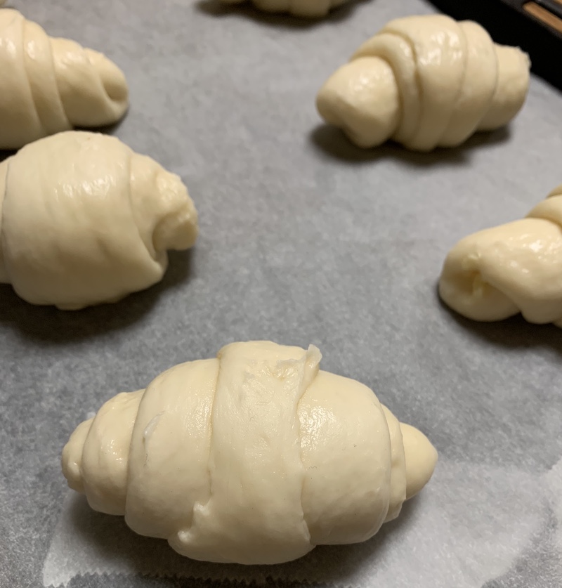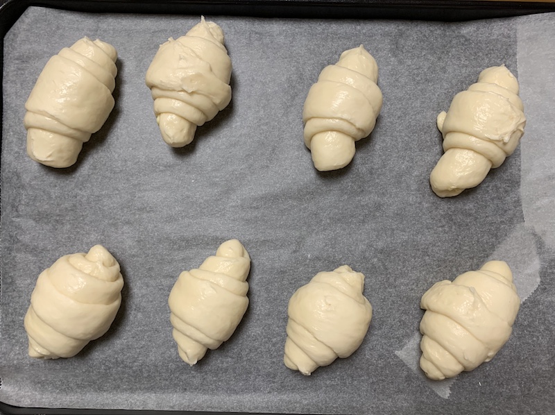 今回もバターを巻き込んでいるから、バターを包むぞ!という意気込みがクロワッサンでも作るのかという形のものも。