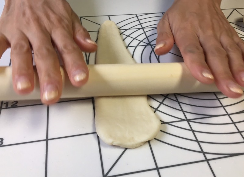 綿棒で伸ばす。ベンチタイムのおかげで、生地が扱いやすくなっているらしい。第一回目はそのことをまるっと忘れていた。そして今回は2回目よりもだいぶいい気がする。