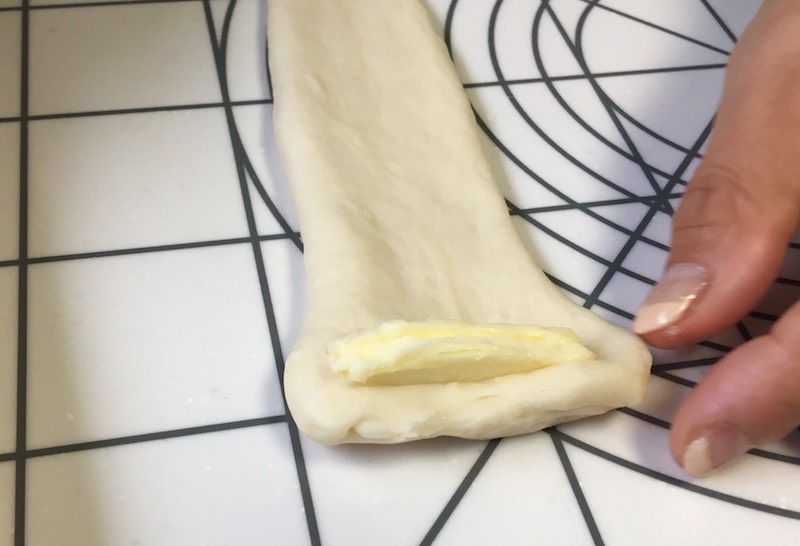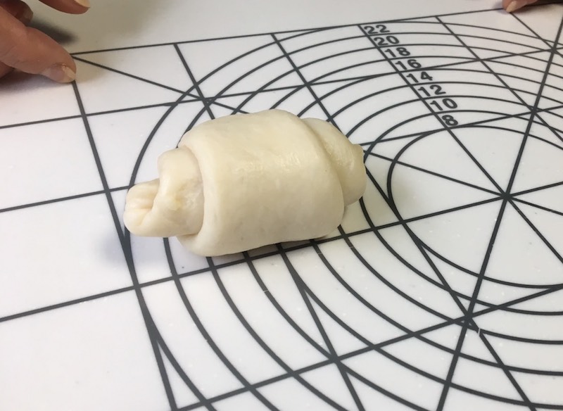 気持ち端を引っ張って隠すようにしながら最初の二巻くらいはしっかりバターを巻き込む。