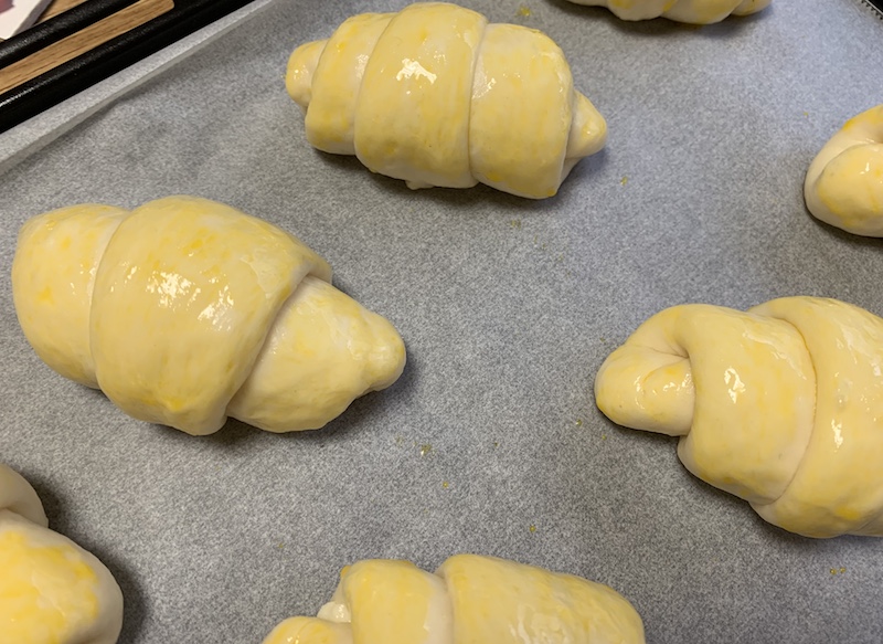 さて今回。二次発酵が終わり卵液を塗ったところ。