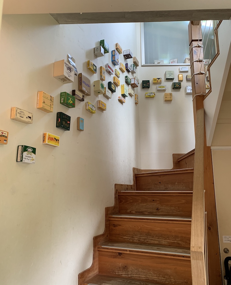 2日目には、「無料になり、お代わりはできない」ということ、試食バターは量がSMLと指定でき、その量の程度の説明を受け、この、バターで彩られた階段を上がります。