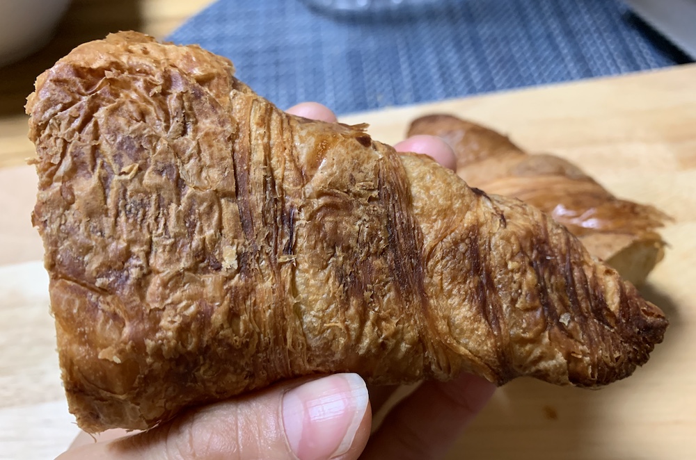 なんて感動的なの。パリのどのパン屋とか、見かけた度入っていった私にはさっぱり分からないが、これが本場のクロワッサンかーと思いながら味わっていた日々を彷彿とさせる。