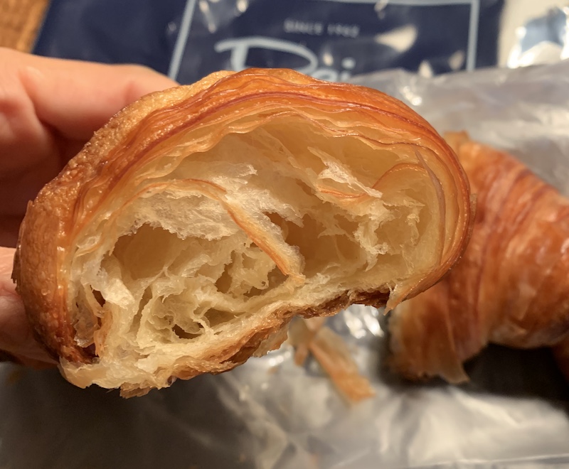 クラムは気泡が大小あり偏っている印象。千切ったから、もう指はテカテカである。バターの香りも非常に良い。何度も鼻を近づけて楽しんだ。