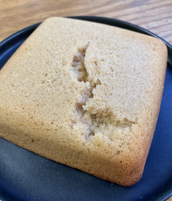 こちらの方が、しっとり感が強く、小麦粉にはない、粒々とし生地の舌触りを楽しめる気がする…しかし、型が違い過ぎて、比較し難い。