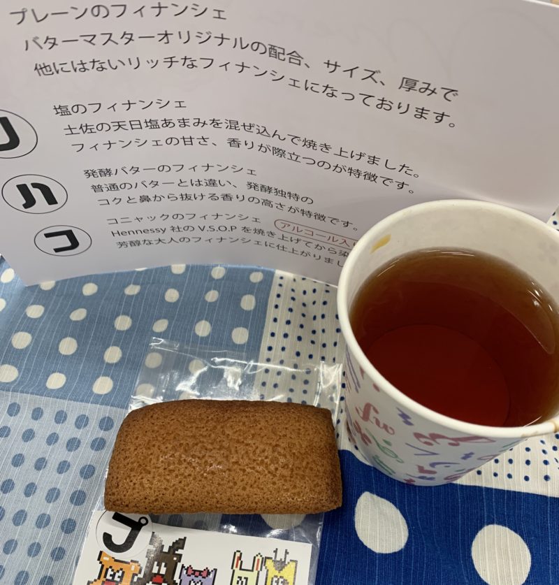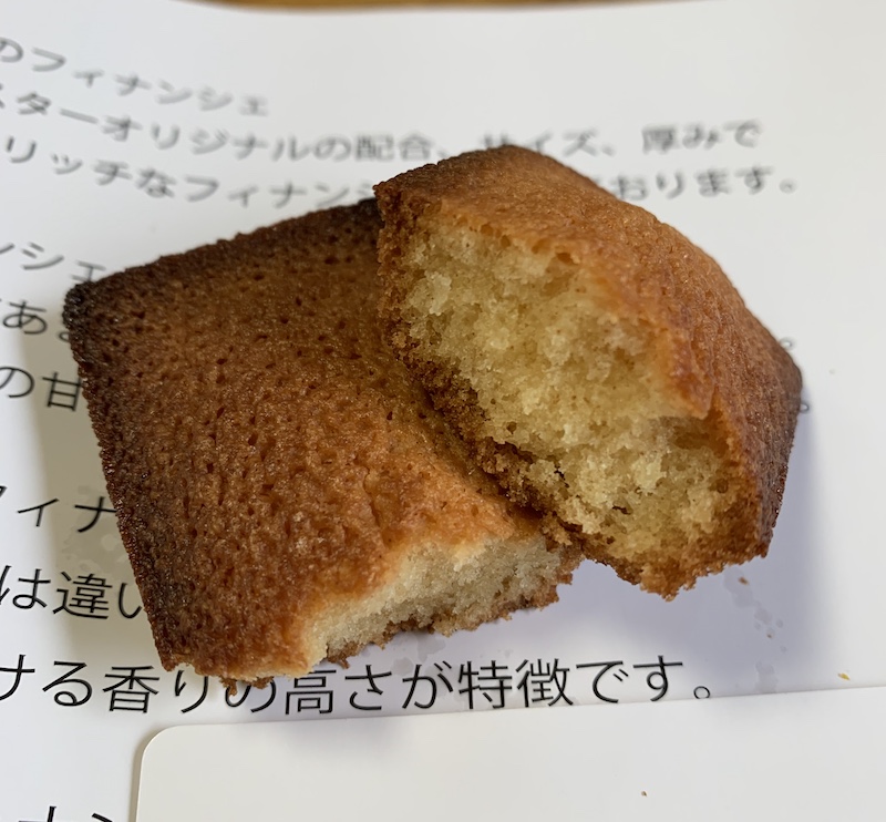 お店のフライヤーに書かれていた4種で最も気になったのは、一番最後のコニャックに浸したというフィナンシェだ。