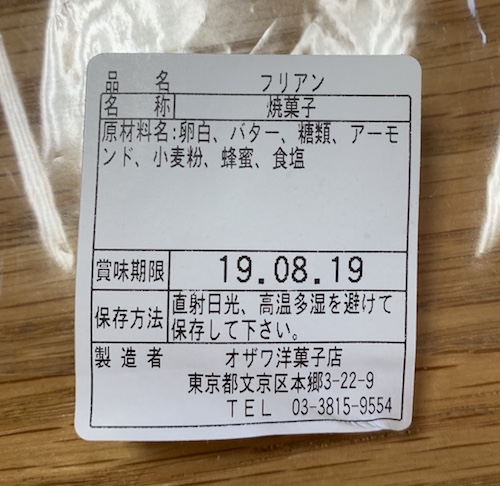 原材料が卵白バターの次に「糖類」となっていて、最後の方に蜂蜜があったのだけど、こういう場合蜂蜜は糖類、ではないのですね。