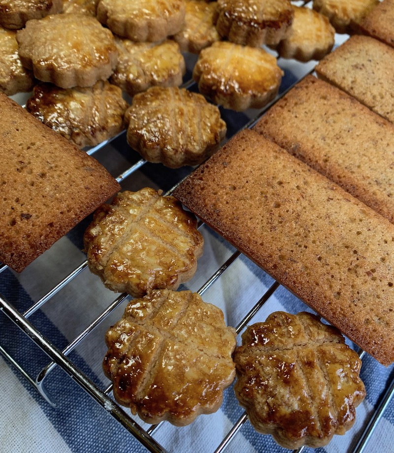 なので、まず卵を分けたら、さっさとガレットナンテの生地を仕立てて、冷蔵庫へ。フィナンシェを焼き上げると、ガレットナンテの生地を伸ばして型抜いて・・ああ忙しい。しかしなんたる達成感…。