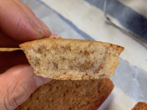 湿度を保ちつつ、端の輪郭の焼きの強さ噛み締めると滲むかのようなバター香…、そのためには、小麦粉とアーモンドプードルと同量にしてみてはどうか。